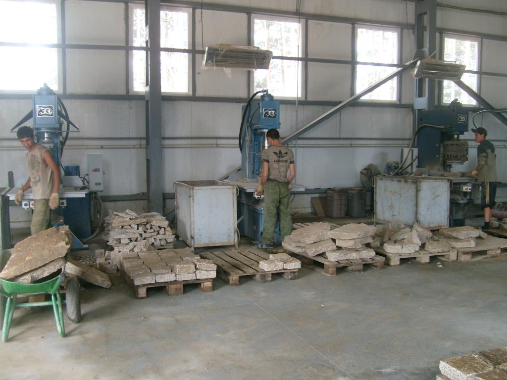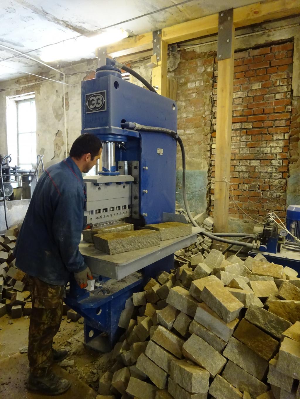 Гидравлический камнекольный станок может использоваться не только в составе камнеобрабатывающей линии для массового изготовления брусчатки и колотых строительных изделий, но и как отдельная производственная единица для переработки неликвидных остатков.