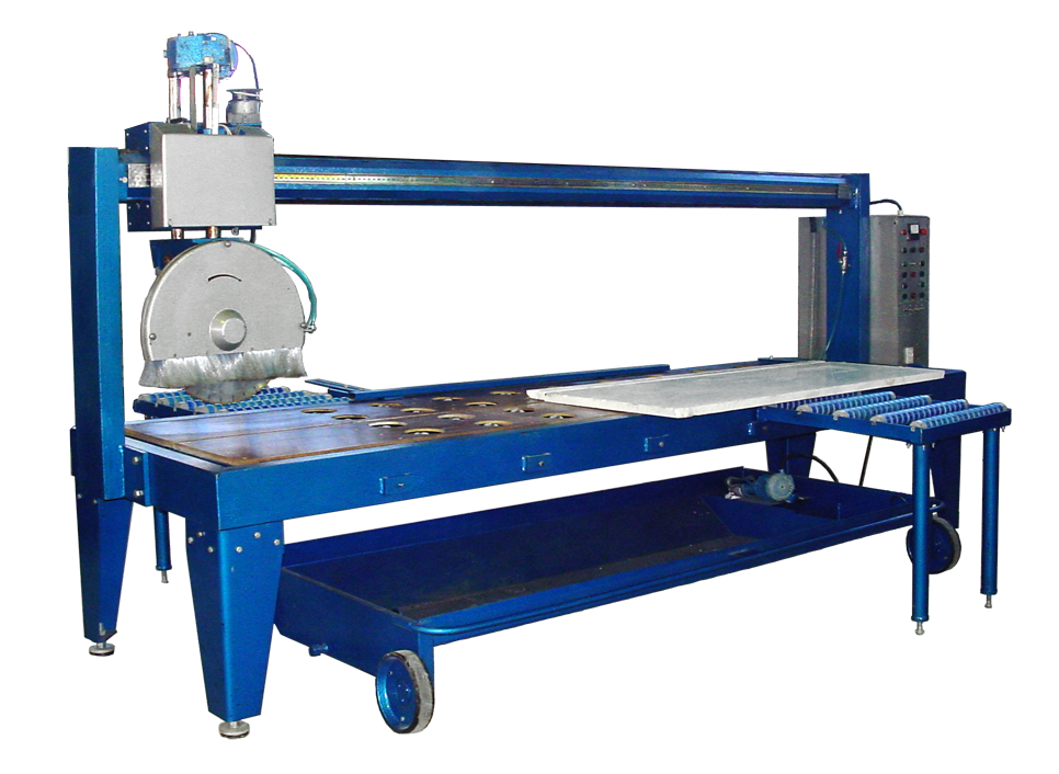 Распиловка, окантовка или торцевание под углом 45° производится алмазным диском диаметром 450 мм (500 мм) в полуавтоматическом или автоматическом режиме по заранее заданной и исполняемой программируемым логическим контроллером программе. Регулируемые бесступенчатая скорость подачи каретки и частота вращения шпинделя позволяют подбирать оптимальный режим реза для любого типа камня, обеспечивая высокую производительность и качество обработки. Позиционирование заготовки осуществляется с помощью устройства «микролифт» и лазерной линейки.